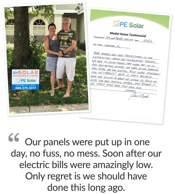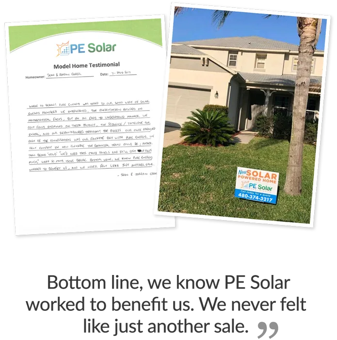 "We always wanted solar, but were a little uneasy at first... But PE Solar took the time and answered all of our questions and were really easy to get a hold of.
